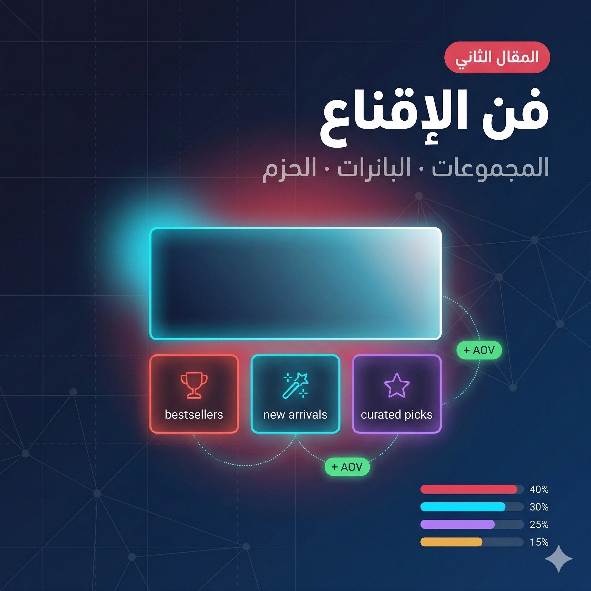 عندما يدخل العميل متجراً فعلياً، هو لا يرى منتجات فردية فقط — يرى عروضاً موضوعية، ولافتات توجّهه، وسلالاً جمعت المنتجات معاً ليسهل عليه الشراء. هذا ليس تزييناً — هو هندسة سلوكية مدروسة. المتجر الإلكتروني يملك الأدوات ذاتها: المجموعات بديل عروض الثيمات، والبانرات بديل اللافتات، والحزم بديل التوضيع المتقاطع. الفرق أنك تستطيع قياس كل شيء